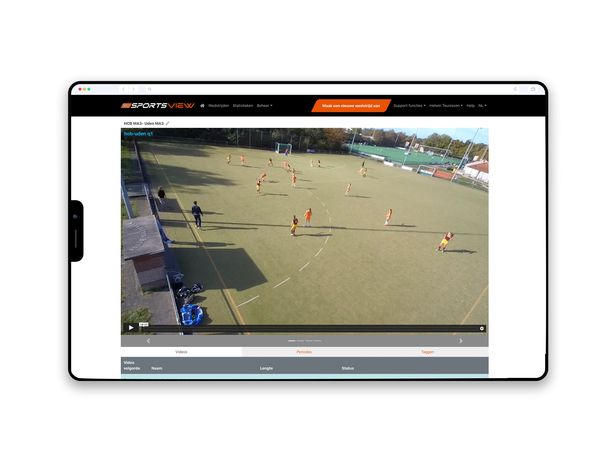 Korte omschrijving: SPORTSVIEW is een video analyse tool. Via een app geef je, eventueel met meerdere mensen tegelijk, de haarscherpe videobeelden tijdens de wedstrijd “tags” zodat zichtbaar is welke keuzes spelers maken. Zo is het direct na afloop mogelijk de samenvatting te analyseren met individuele spelers en het team. SPORTSVIEW bestaat uit een videomast (inclusief camera en toebehoren) en analysesoftware. Deze zijn ook los te gebruiken.