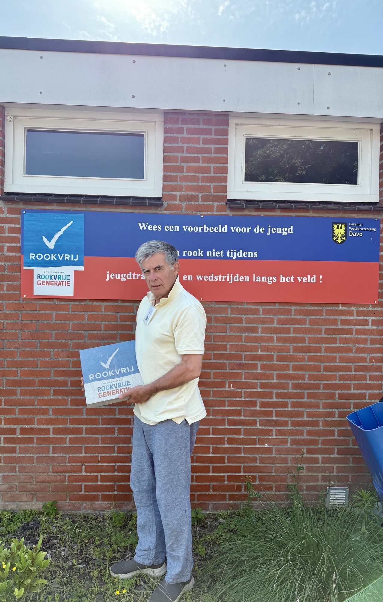 Vanochtend 2 juli 2025 – in de zomerse hitte – heeft Meriel Hendriks van Sportbedrijf Deventer stoeptegels met het logo van de Rookvrije Generatie afgeleverd bij de sportverenigingen DVV Davo, HSV The Eagles (honkbal), Tennis en Padel Colmschate, Sportclub Deventer.