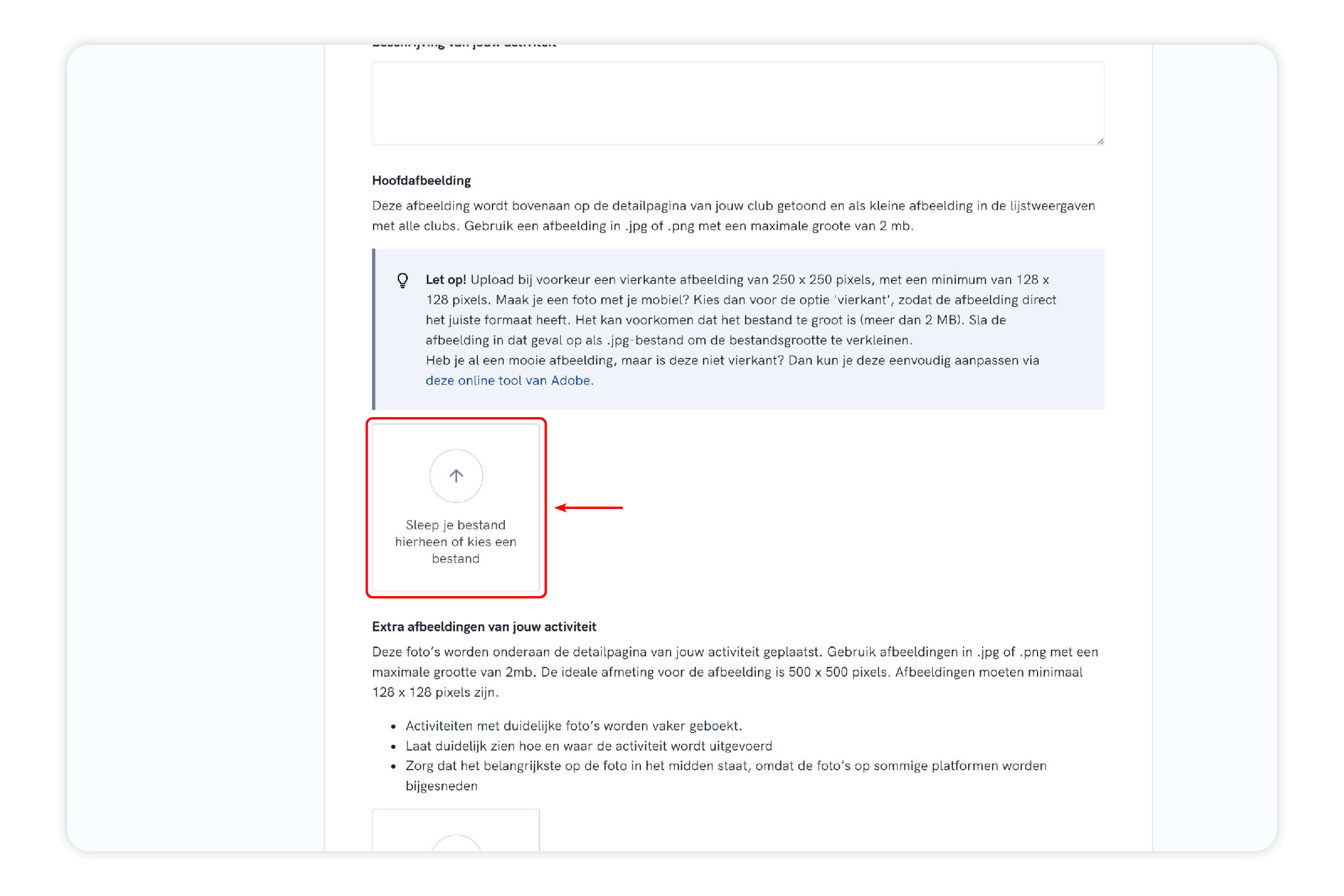 Let op: een activiteit heeft minstens één vierkante foto nodig.